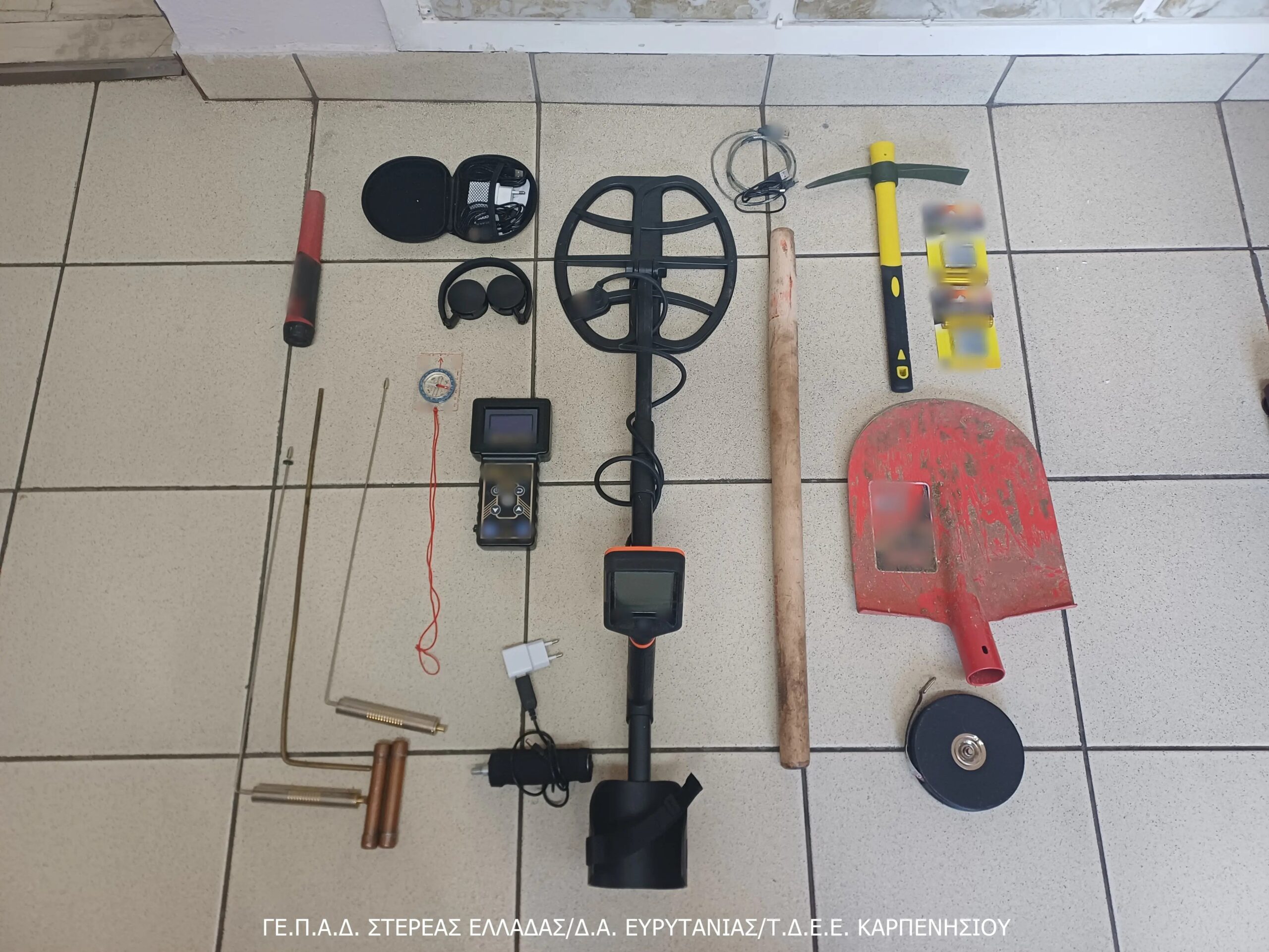 Συνελήφθη άνδρας, το απόγευμα της Τρίτης (30/9) σε περιοχή της Ευρυτανίας, από αστυνομικούς της Α’ Ο.Π.Κ.Ε. του Τμήματος Δίωξης & Εξιχνίασης Εγκλημάτων Καρπενησίου, για παραβάσεις των νομοθεσιών περί προστασίας αρχαιοτήτων και εν γένει της πολιτιστικής κληρονομιάς, καθώς και περί ναρκωτικών. Ειδικότερα, έπειτα από διενέργεια αστυνομικού ελέγχου σε Ι.Χ.Φ. αυτοκίνητο που οδηγούσε ο συλληφθείς, βρέθηκαν εντός του οχήματος και κατασχέθηκαν: 3 ανιχνευτές μετάλλων, άνευ σχετικής αδείας από την αρμόδια Αρχή, -3- βέργες ραβδοσκοπίας, -2- αυτοσχέδιες χειρολαβές βεργών ραβδοσκοπίας, ζεύγος ακουστικών, μετά φορτιστή και καλωδίων φόρτισης ανιχνευτή μετάλλων, -2- επαναφορτιζόμενες μπαταρίες και -2- συσκευασίες με μπαταρίες, πυξίδα και μεζούρες μέτρησης οριοθέτησης χώρου, φορτιστής και δύο -2- καλώδια φόρτισης ανιχνευτών μετάλλων, φτυάρι και σκαπτικό εργαλείο. Επίσης, στην κατοχή του βρέθηκε και κατασχέθηκε μία αυτοσχέδια συσκευασία, η οποία περιείχε μικροποσότητα ακατέργαστης κάνναβης. Την προανάκριση διενήργησε το Τμήμα Δίωξης και Εξιχνίασης Εγκλημάτων Καρπενησίου.